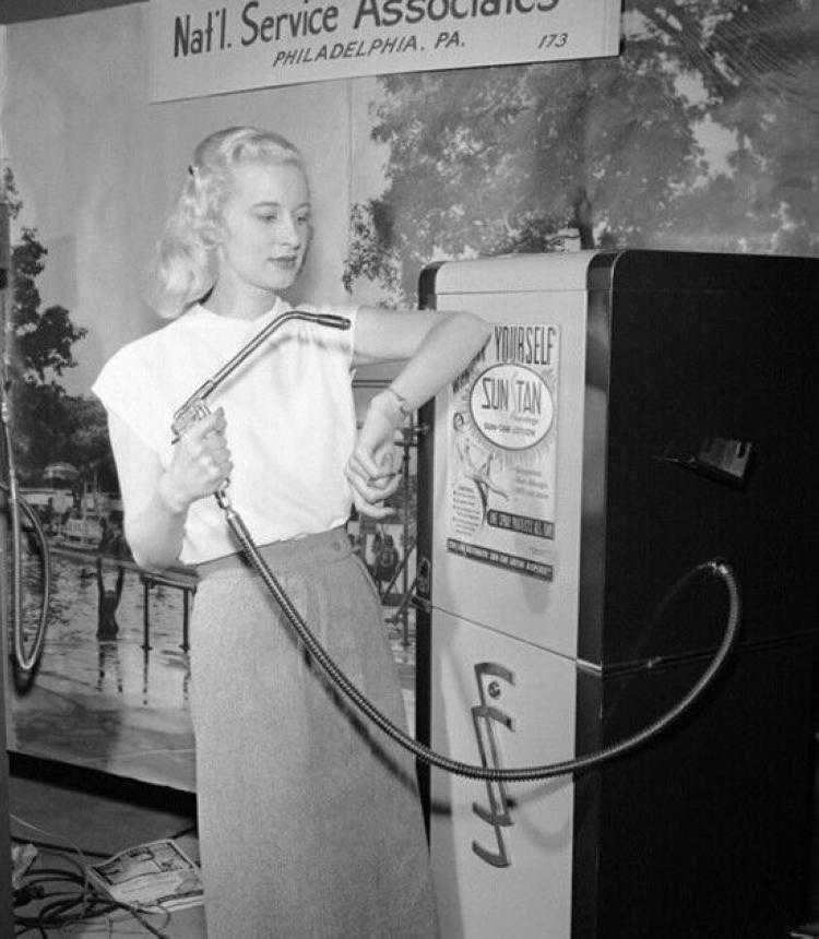 1949年出现了一台防晒霜自动贩卖机,带有喷雾喷嘴,30秒的喷雾仅花费1美分。