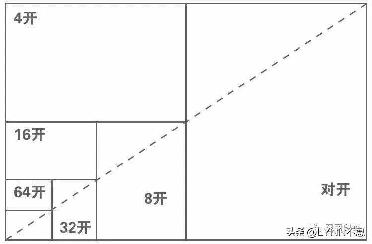 将全开纸张对折为对开(2开),对开纸再对折为4开,以此类推。