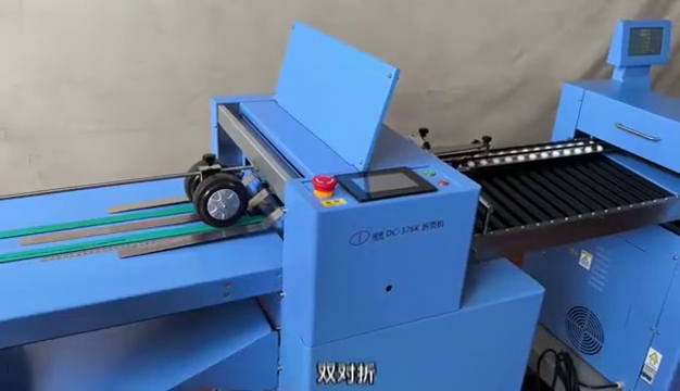 通过压痕机和折页机的紧密配合,实现压痕折页同步完成。选择折页方式,自动进纸,操作简单。高精度连续进纸,加上滚轮和滚轴设计,使得压痕后的纸张更加准确稳定地进入折页机。压纸轮采用皮带送纸,可自动将书本叠齐,方便快速打包。多种折法功能,包括关门折和三页风琴折。同时还可以选择反向对折、双对折和内三折等方式。压痕机还可以单机使用,演示单压痕不折页,轻松撕掉虚线。输入封面长度和书脊厚度,可以轻松实现压痕,方便进行胶装。
