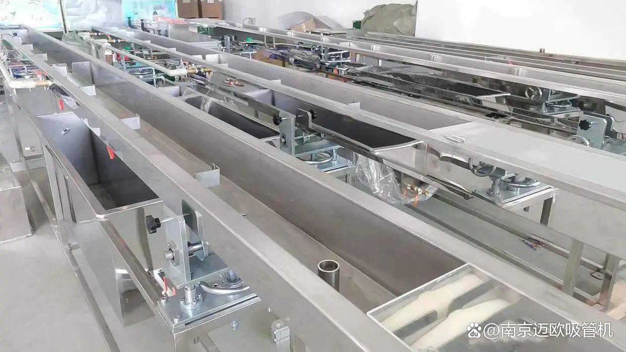 然后,挤出的吸管进入水槽中进行冷却,冷却后的吸管由吸管切割机进行切割。