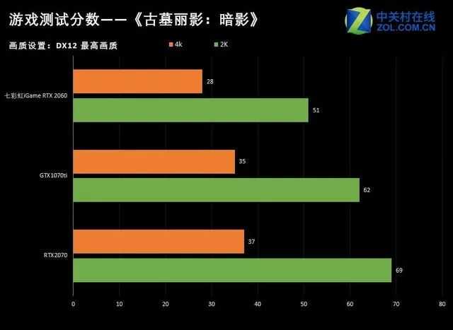 首先是《古墓丽影:暗影》,我们在画面设置中手动调到特效全开+SMAA抗锯齿(其它显卡也是如此)。在这款游戏中iGameRTX2060UltraOC的表现比较一般,在与GTX1070Ti存在20%左右差距的同时与RTX2070相差更大一些,这个表现与3DMARK测试结果并不相同,原因可能是驱动方面的问题,在过去的RTX20系显卡测试中也是如此。
