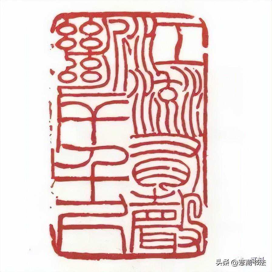 此印的疏密处理堪称经典,左行一疏三密,右三疏,作者“宽可走马,密不容针”的创作理发挥到极致,呈现疏者更疏,密者更密的效果如刻完此印,叹“化工之妙如斯夫”,一方普的石纹图案竟能激发作者如此绝妙的创作灵感留下如此精彩的传世名作,也真是天意巧合了。