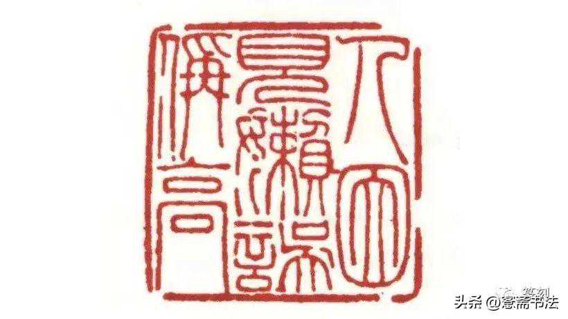 这是一方多字白文印,十字如排成三行则横笔繁密,排成四行则大部分字的空间为长方形,使字形舒展,更能体现邓氏小篆的特征。