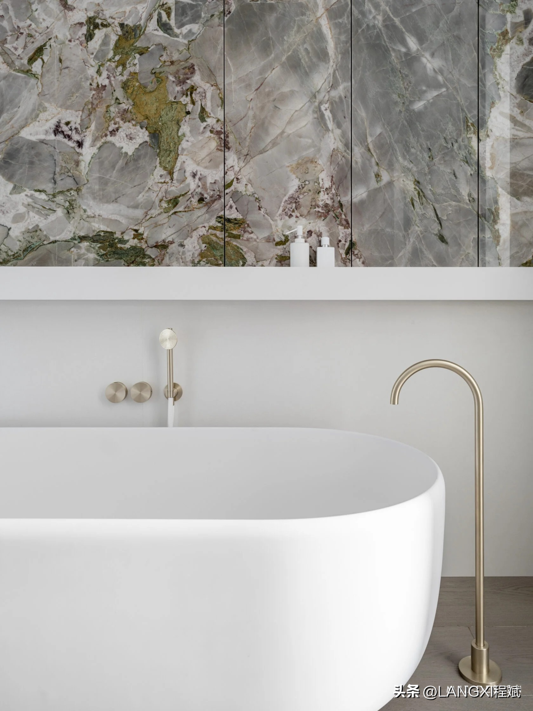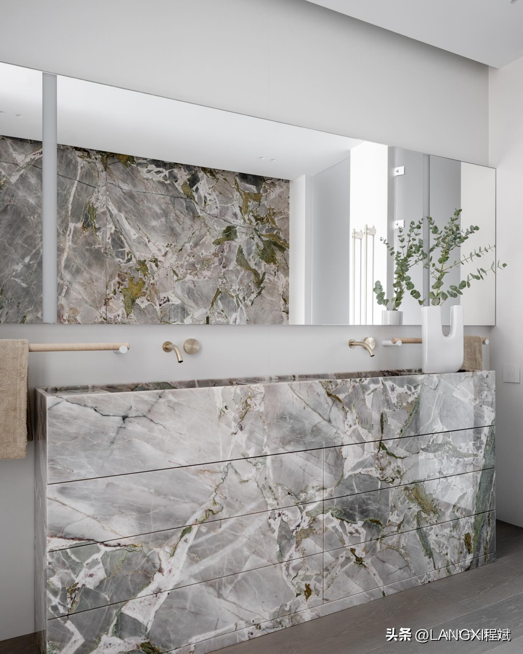 这个空间因其纯粹的几何形状和多样的纹理而被人们记住,粗随的石灰与精致的大衣和毛黑布并置,黄铜亮点带来温暖,活跃的大理石图案使内敛的调色板充满活力,我们拆除了巨大的窗台,用对流器取代了笨重的散热器,其格栅由与接木地板相同的木材制成。所以现在窗外的风暑看起来就像巨幅画作。