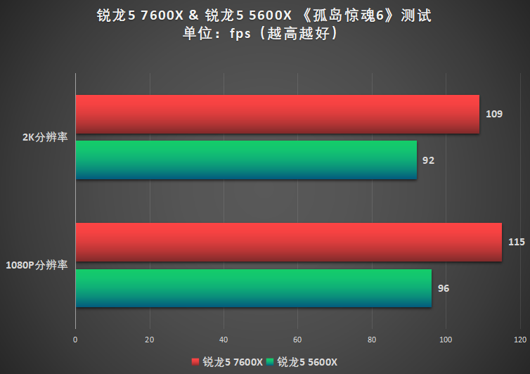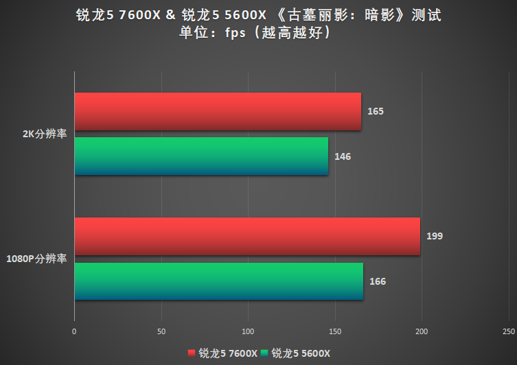 不过,AMD锐龙57600X依然展现出其强悍的游戏性能,在平均帧数表现上同样超越了锐龙55600X。