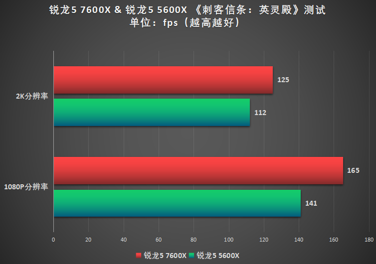 《刺客信条》游戏系列,相信玩家们都并不陌生。这次测试比较吃性能的《刺客信条:英灵殿》。设置极高画质,分别在1080P和2K分辨率下测试,锐龙57600X依然要比锐龙55600X表现更好,大约提升了8-10%左右。