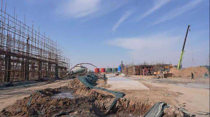 1月27日上午,阳光明媚,记者来到位于开封精细化工开发区的河南恒晖精细化工有限公司年产5200吨农药中间体项目建设工地,只见塔吊林立、车来车往、机声轰鸣,一派繁忙景象。