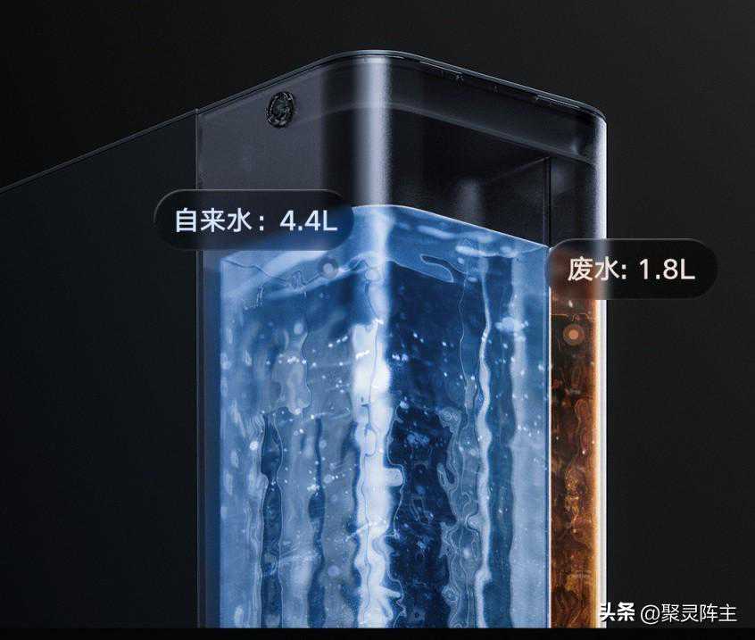 这台机器的水箱总容量为6.2L,其中原水箱即自来水箱4.4L,废水箱1.8L,足够一家五口日饮水。而且机器原水废水分离,废水不污染原水,不仅避免了废水的重复过滤,同时也提高了水质,还能节省滤芯用量。