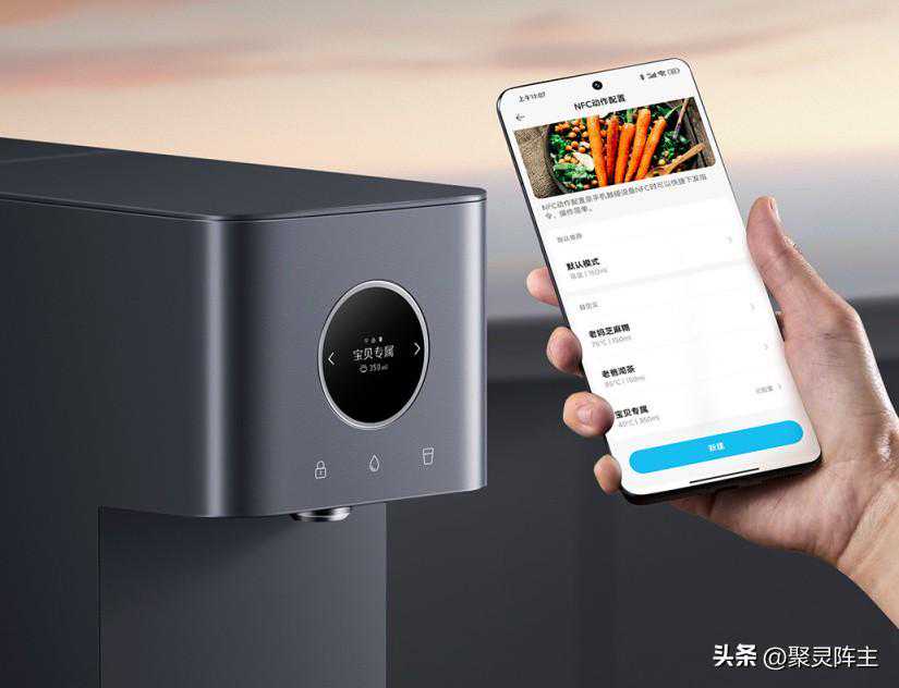 而且如果家里有小宝宝,在宝宝的奶瓶瓶底贴上设置好泡奶温度,水量的NFC贴,每次放上奶瓶直接接水,无需额外操作,宝妈省时又省力。
