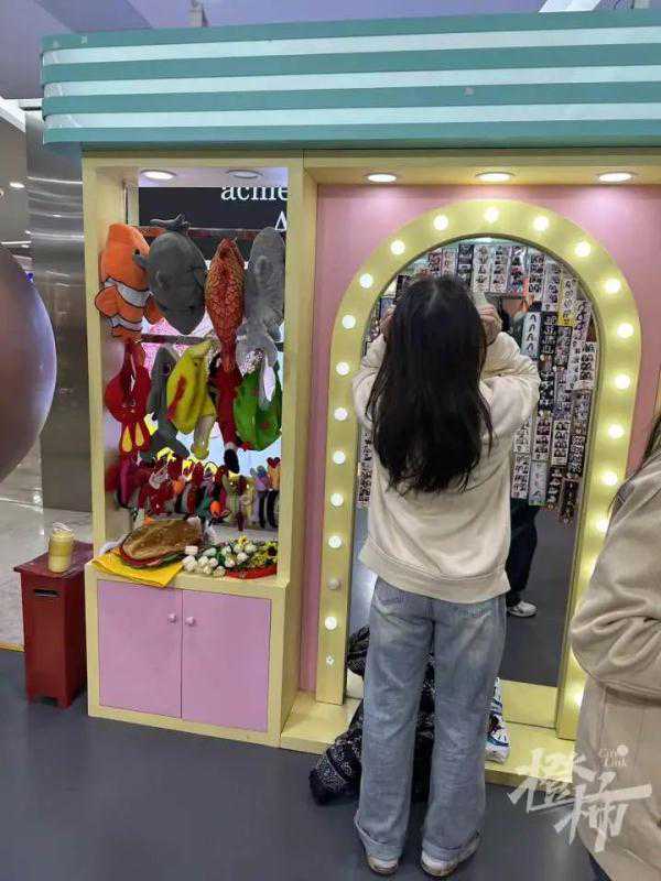 在杭州,年轻人的潮流聚集地湖滨银泰附近,方圆五百米内就发现了三处拍大头贴的地方。和20年前的大头贴机相比,现在的大头贴机外观造型更时尚,像素也更高,成像更清楚。镜头边还自带打光灯,怼脸拍也白皙有光泽。有的商家还提供了丰富的拍照道具,如发夹、发箍和头套等供顾客“拗造型”。