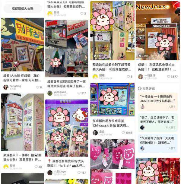搜索小红书发现,大头贴馆也受到了很多地方年轻人的欢迎。不少年轻人拍摄大头贴,并分享了种草笔记。