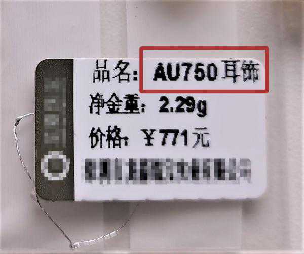 ①无中文。有一些商家有意无意地仅在标签上体现英文缩写,误导消费者对于产品信息的判断,如:“Au750”、“G999”、“S925”等。