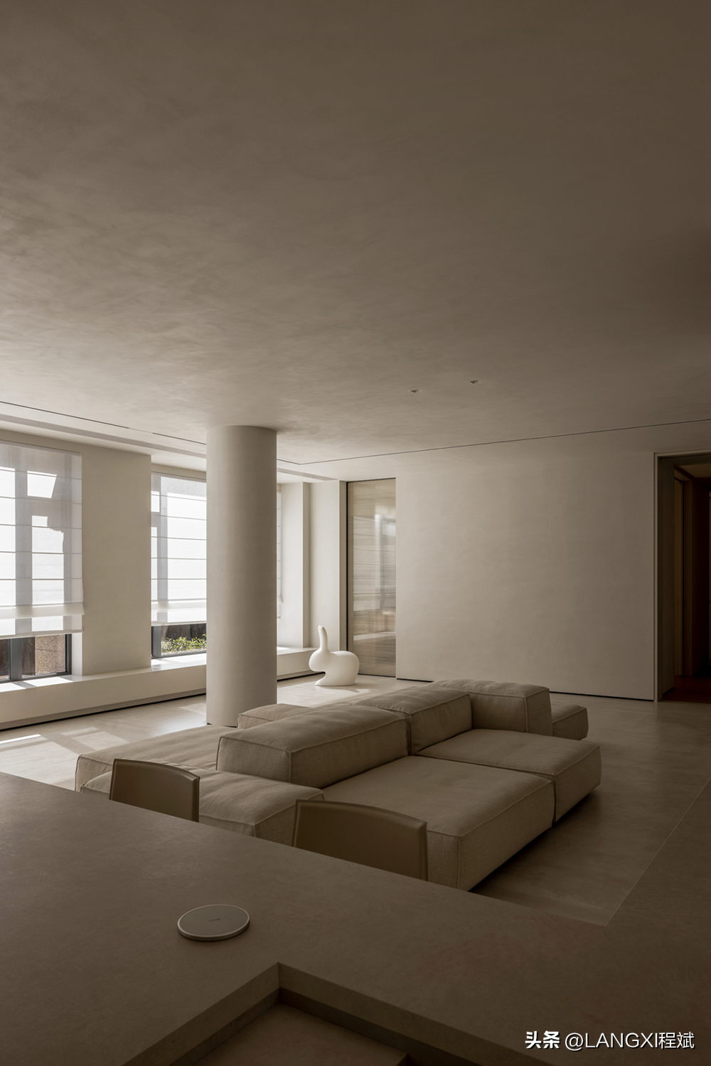 延长的廊道,保证公区开阔的同时,亦是处理动静分区的手法。