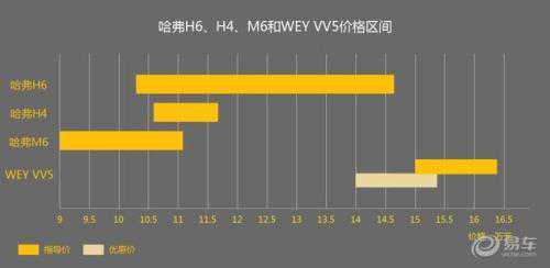 但是,从上图可以看到,产品缩减之后的H6,依然和M6、H4以及VV5在定价区间上有很大程度的重合,销量分流在所难免。另外一个值得注意的问题是,主打高端的WEYVV5竟然在价格上与H6产生了相当大的价格重合。这样的定价策略,明摆着告诉大家H6和VV5用的是一样的底盘和动力配置。