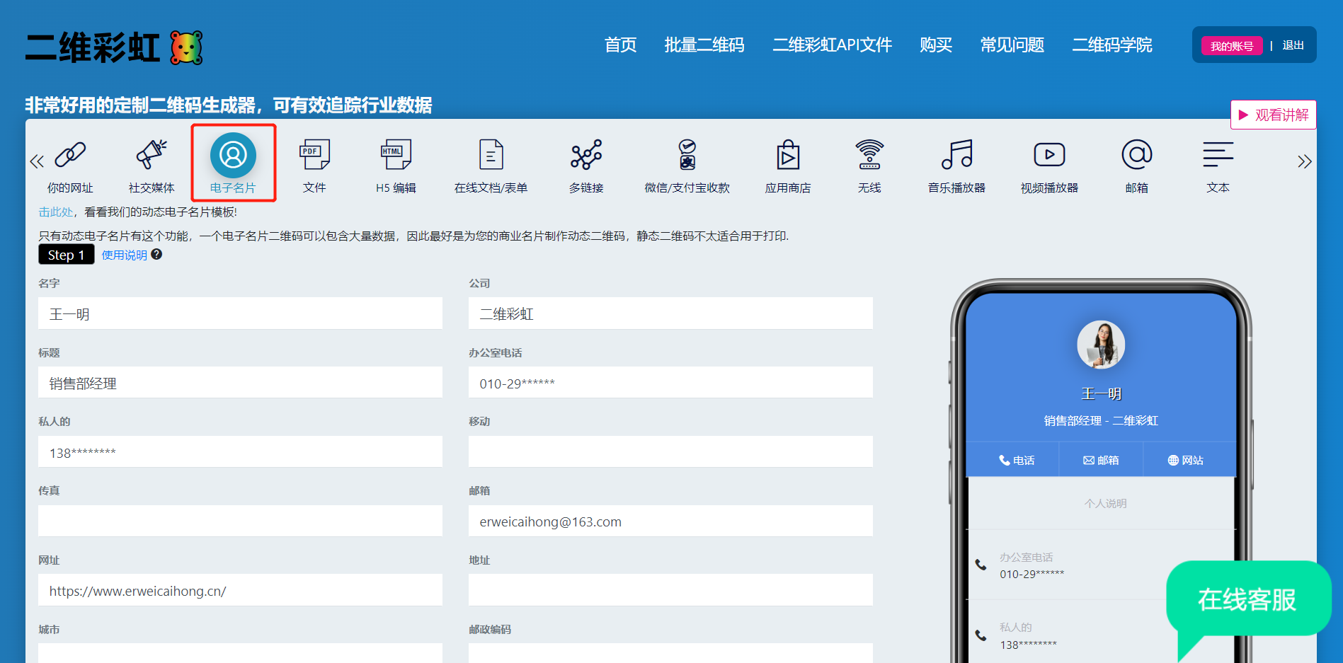 在二维彩虹,就可以制作这样有创意的名片二维码!