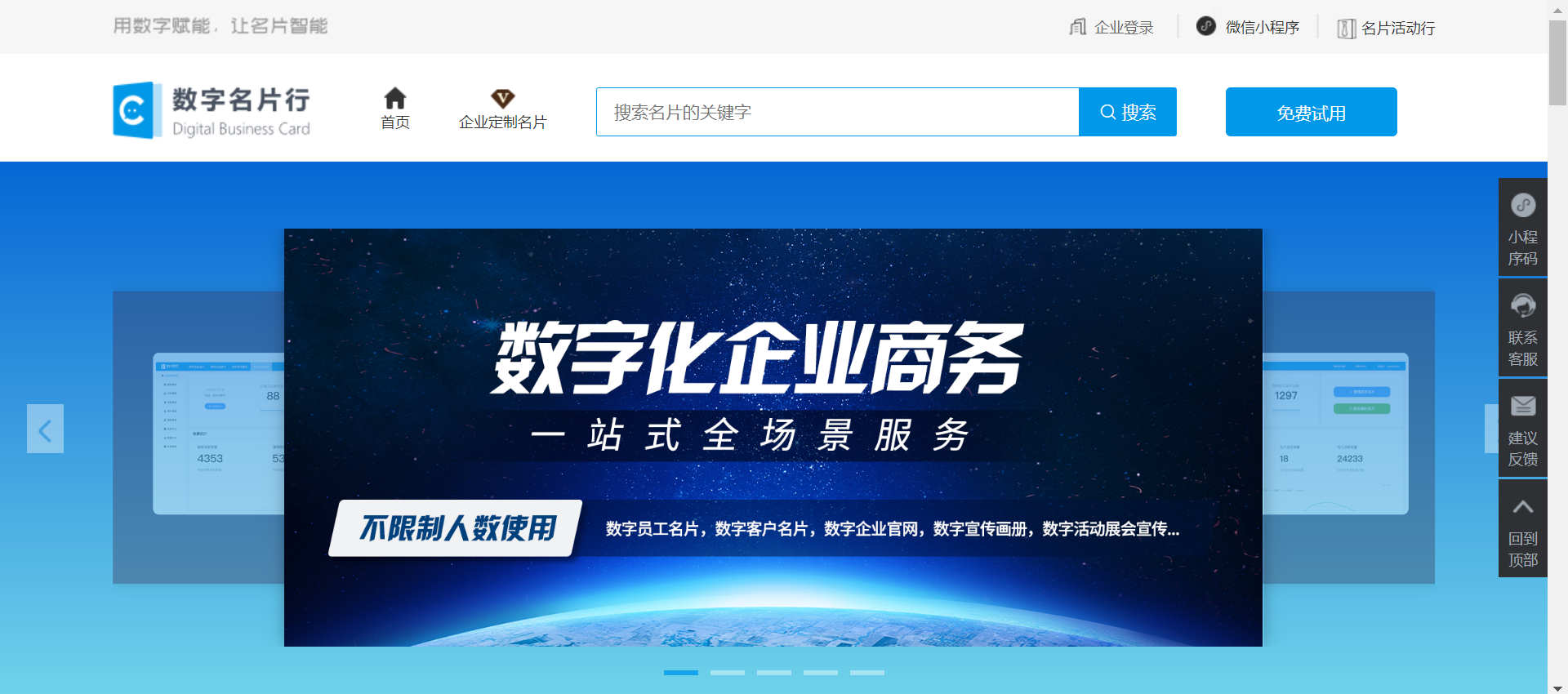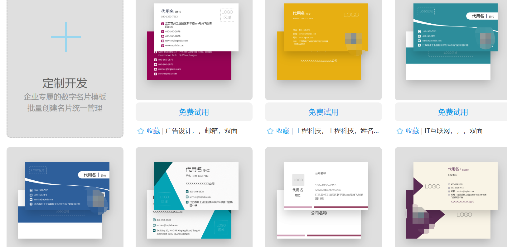 企业级名片管理应用SaaS系统。更适合企业使用!官网展示了一些名片模板,可以进行试用!