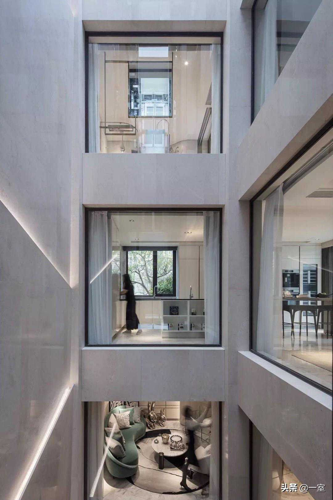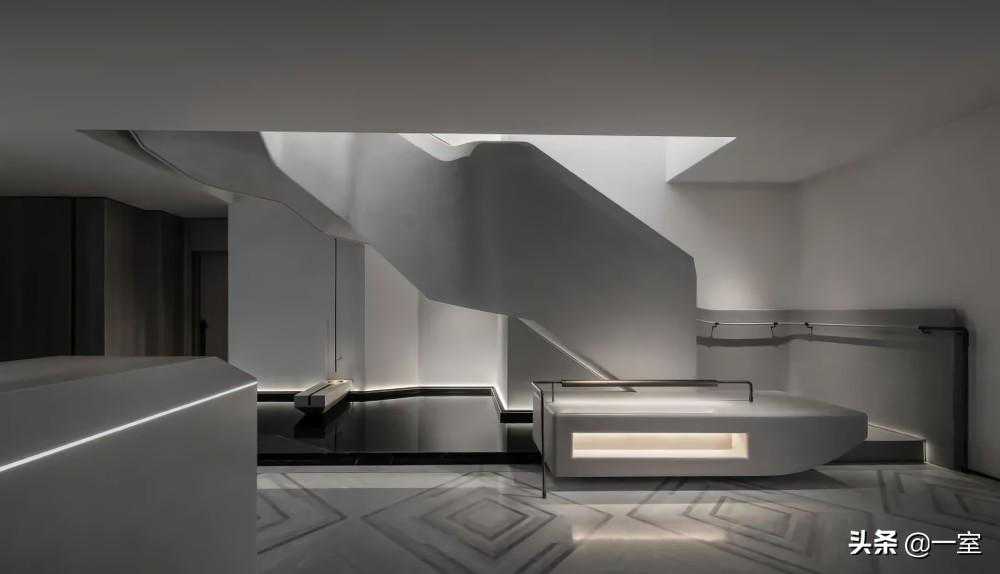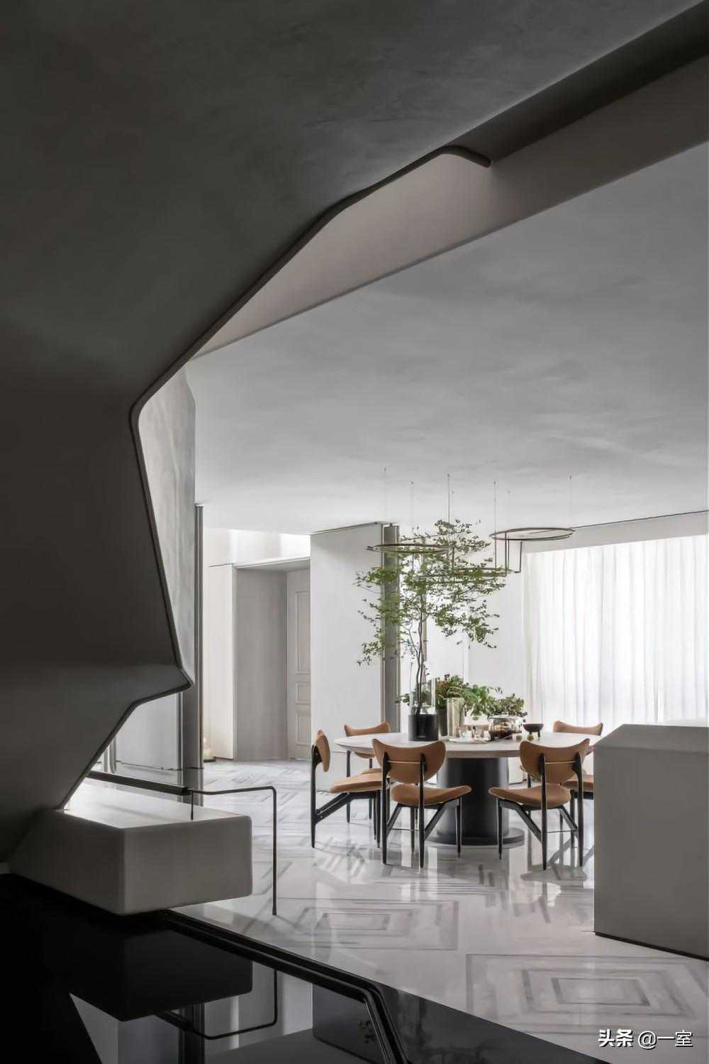 楼梯在空间中除了满足必要的功能,还像是一件艺术品,具有装饰性,丰富了空间层次。