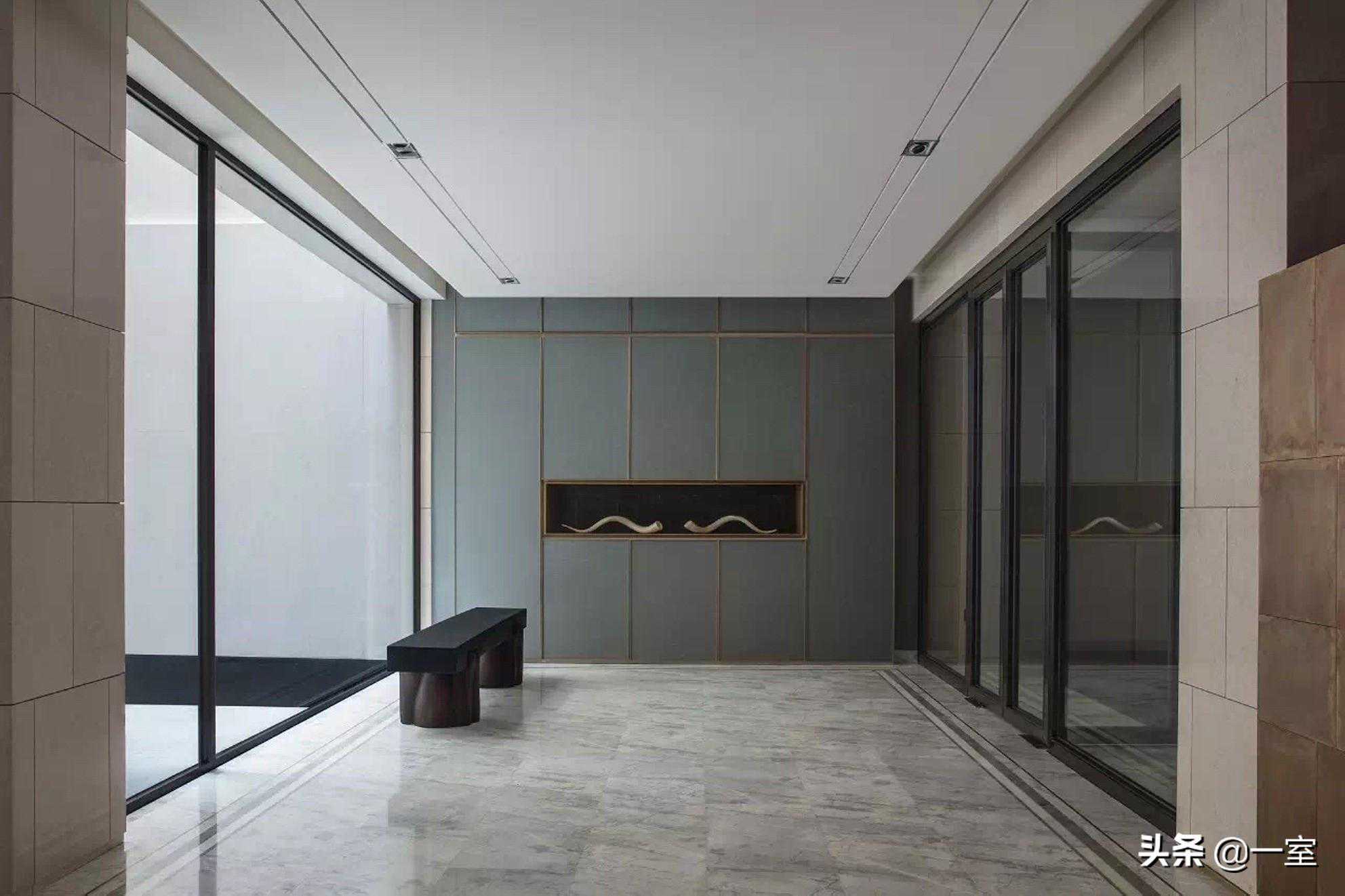 白鹭郡西的样板间水之墅,室内由李玮珉设计打造。穿过玄关,来到开阔的社交空间——客厅和茶室,大面积玻璃的使用,将户外风景尽收眼底,拉近了人与自然的关系。