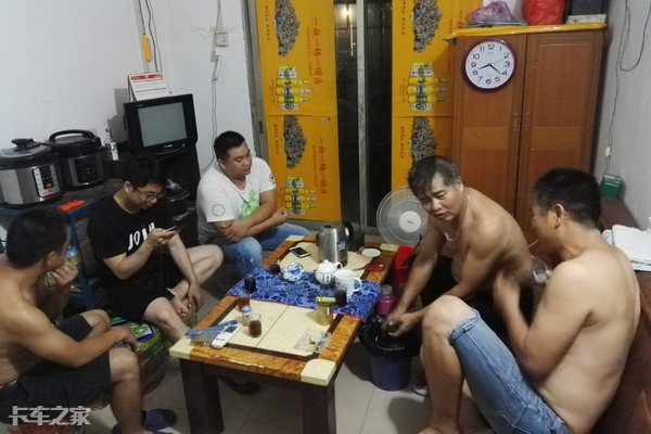 下班了!能够有这个聚聚的时间是大家乐于留在车队的一个关键。兄弟们,喝茶!