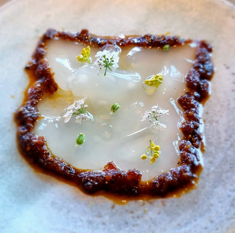 丹麦的米其林三星餐厅Noma在2021年"游戏与森林"季的甜点中对细菌纤维素材料进行了有趣的尝试。