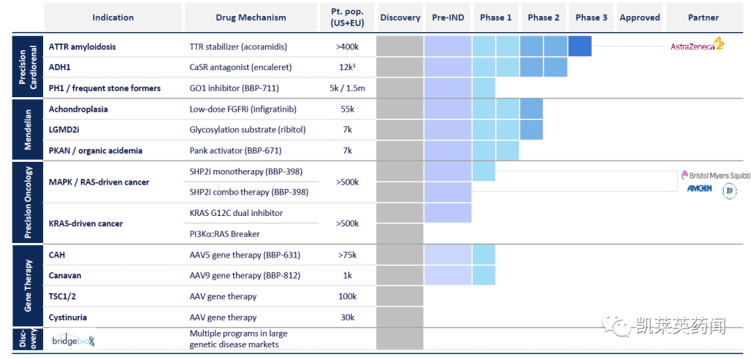 BridgeBio是一家致力于为遗传疾病和由明确基因导致的癌症患者发现、创造、测试和提供变革性药物的生物制药公司。BridgeBio的产品管线有超过30个在研项目,涵盖从临床前到临床后期。