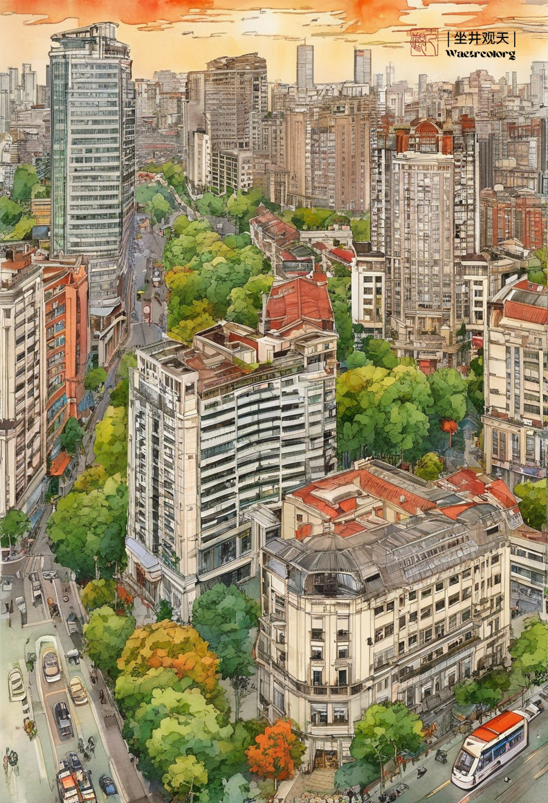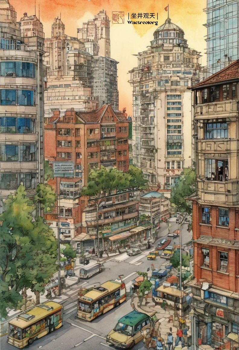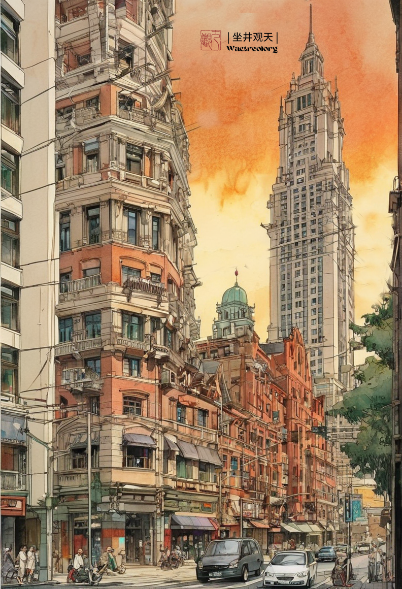 水彩风格AI绘画《魔幻都市漫画》分享。用stablediffusion软件文生图功能生成。具体参数:Steps:33,Sampler:DPM++2MKarras,CFGscale:7,Size:792x1160,Modelhash:6e0ba74ac1,Model:sdvn7Nijistylexl_v1,Lorahashes:"ChinesePrintmaking_中国版画_xl():ea8ffd7252e5,Shanghaistreet-000004:6ecc19be917a",Version:。提示词:ShanghaiArchitectureFeature,Buildings,Trees,Objects,,,superdetail,superquality,colordepth,,,Pastel,WatercolorwettoDry,(ink),(Watercolor),lora:ChinesePrintmaking_中国版画_xl():0.3,lora:Shanghaistreet-000004:0.6,