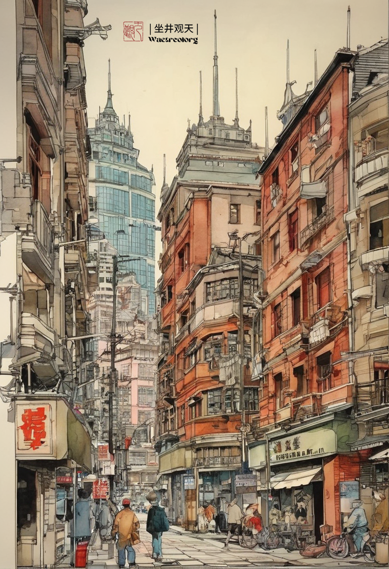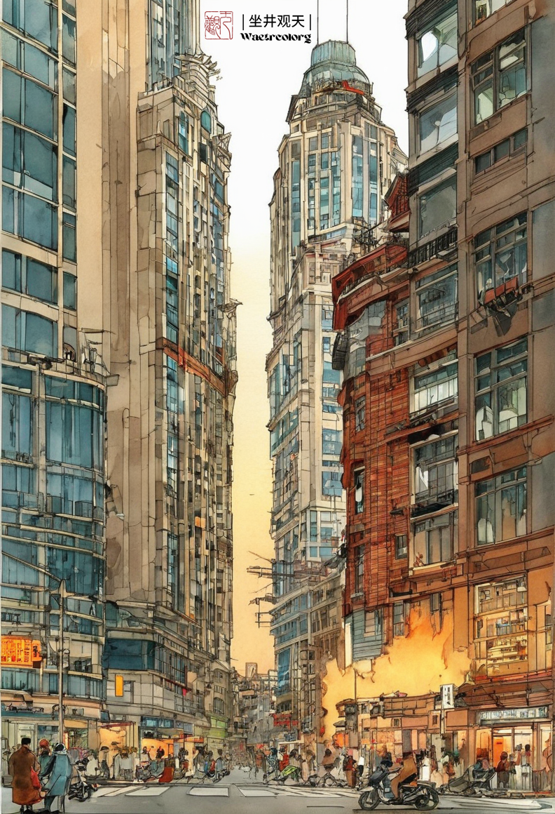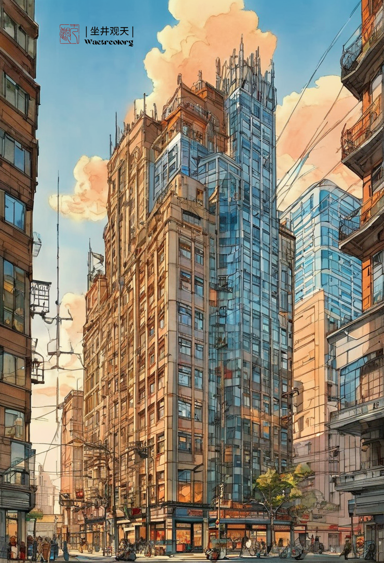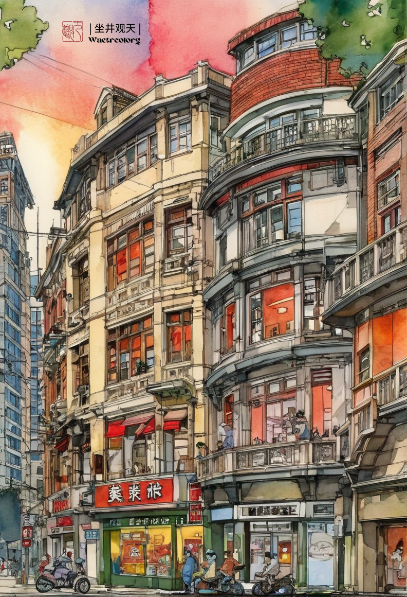 水彩风格AI绘画《魔幻都市漫画》分享。用stablediffusion软件文生图功能生成。具体参数:Steps:33,Sampler:DPM++2MKarras,CFGscale:7,Size:792x1160,Modelhash:6e0ba74ac1,Model:sdvn7Nijistylexl_v1,Lorahashes:"ChinesePrintmaking_中国版画_xl():ea8ffd7252e5,Shanghaistreet-000004:6ecc19be917a",Version:。提示词:ShanghaiArchitectureFeature,Buildings,Trees,Objects,,,superdetail,superquality,colordepth,,,Pastel,WatercolorwettoDry,(ink),(Watercolor),lora:ChinesePrintmaking_中国版画_xl():0.3,lora:Shanghaistreet-000004:0.6,