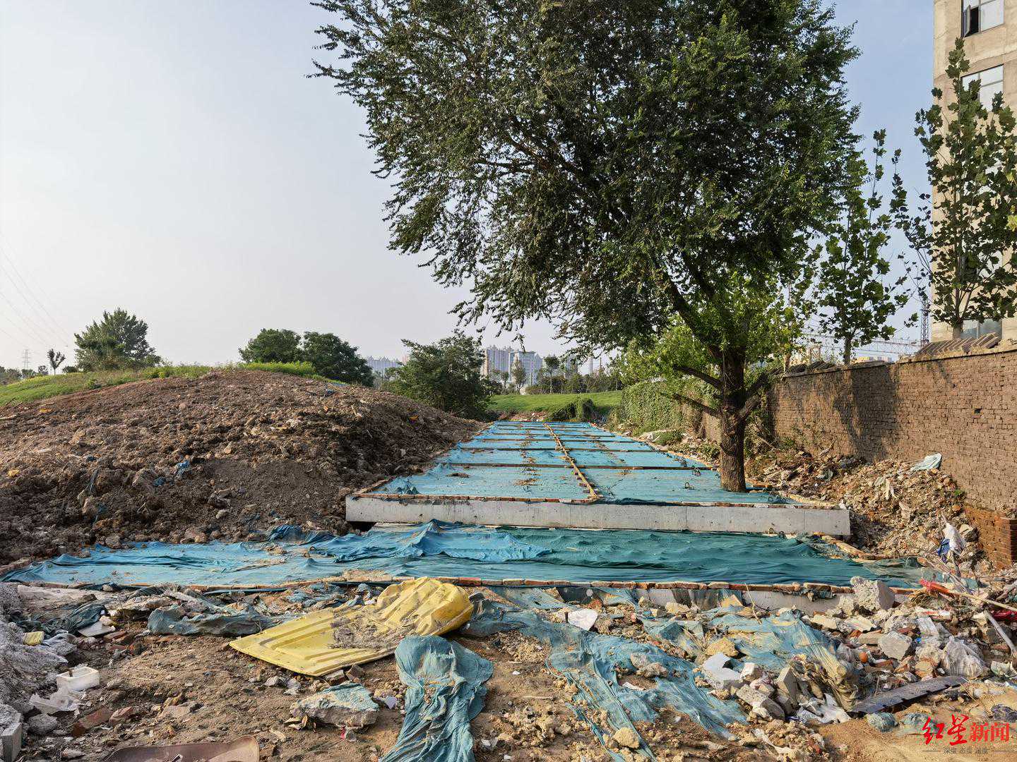 停车场西侧的施工临时围挡不具备挡水功能(图中左侧)