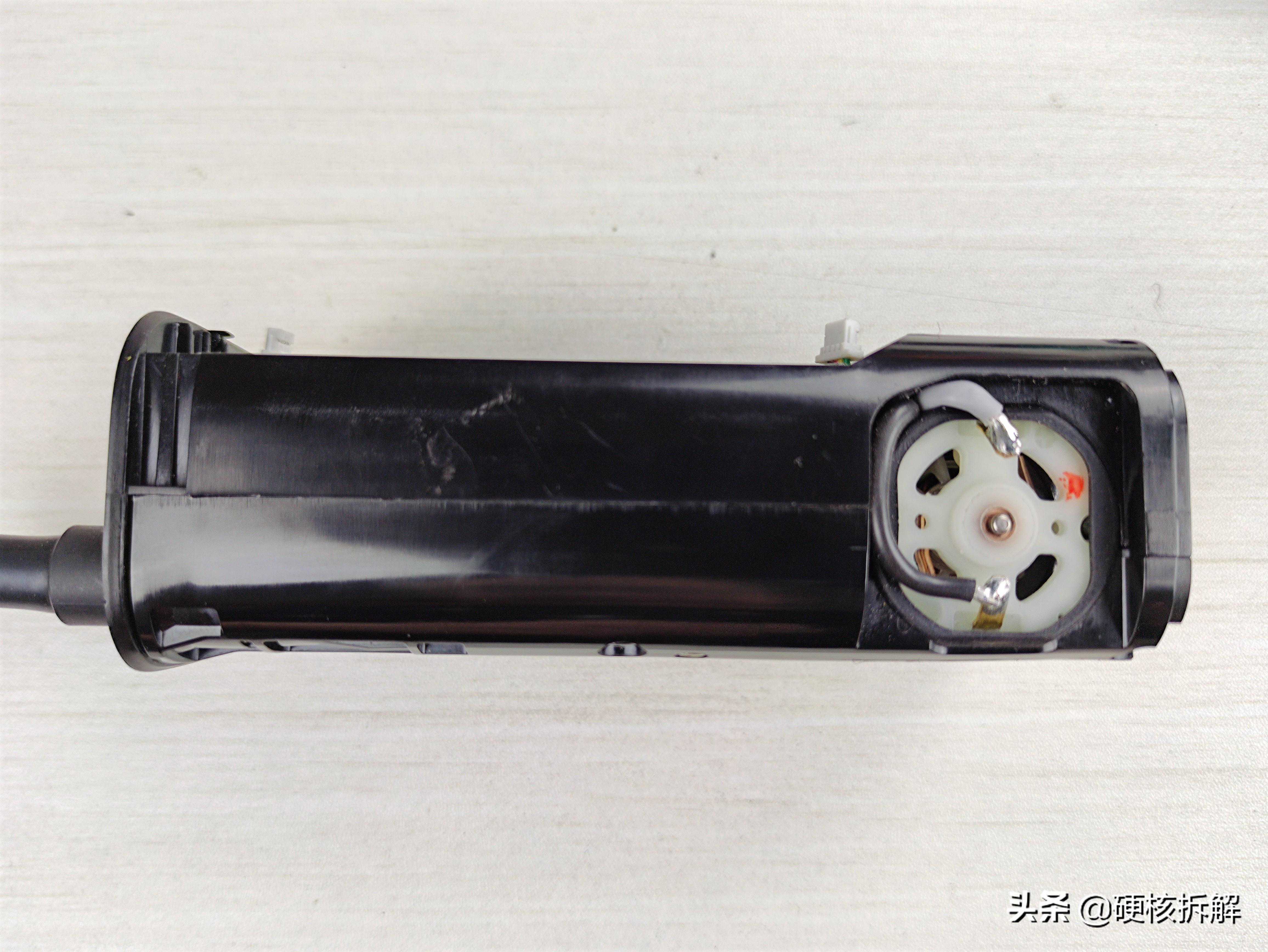 机芯的左侧面,可以看到内部的机械部分是金属结构,下边的电机提供打气动力的同时还兼顾着散热的作用。