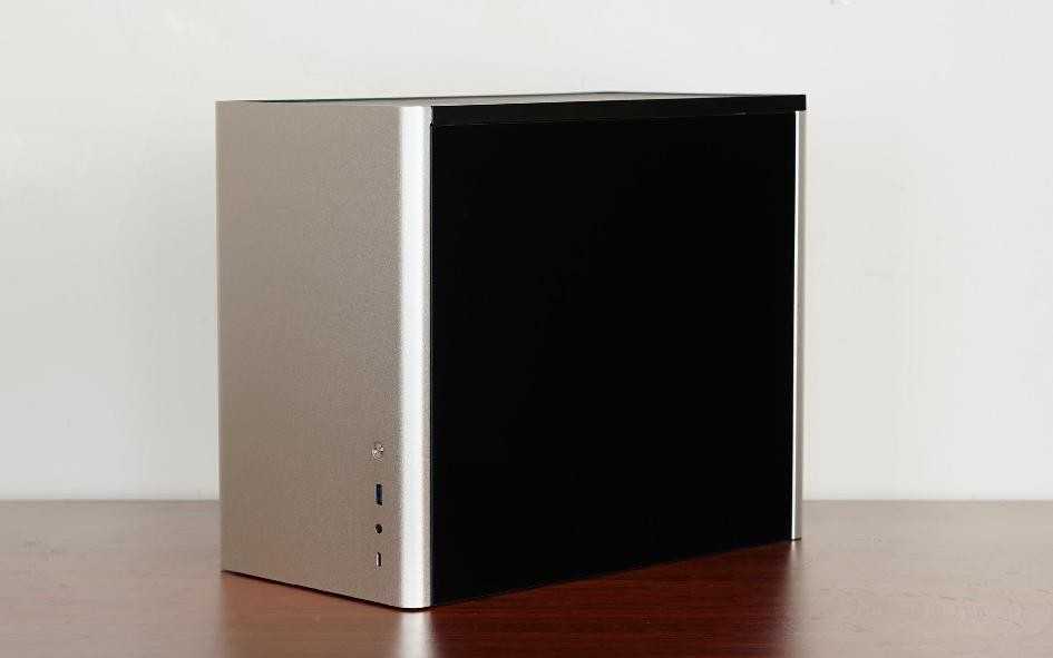 外观方面,乔思伯D30机箱有着简约、时尚的设计,前面板是一整块铝板,质感非常不错。右下角接口部位提供了电源开关、、3.5mm耳机麦克风与等前置接口。