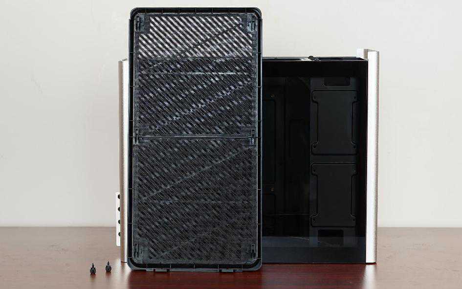 机箱上方的散热件采用斜条纹设计的散热开孔,内层则有防尘滤网,同时机箱底部也有一样的散热开孔与防尘滤网。