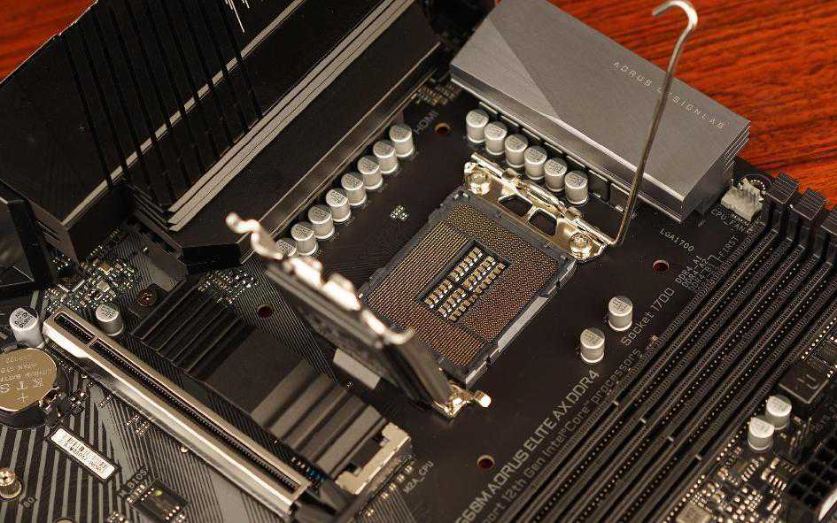 英特尔B660主板具备全新LGA1700处理器接口,外观与之前的LGA115X、1200有着相当大的差别,从正方型变成长方型,防呆的凹槽移至上下各两处而不是左右两侧各一,更大的改动在于装载板的打开方式换成类似LGA1366的结构,插座杆与装载板的方向相反。