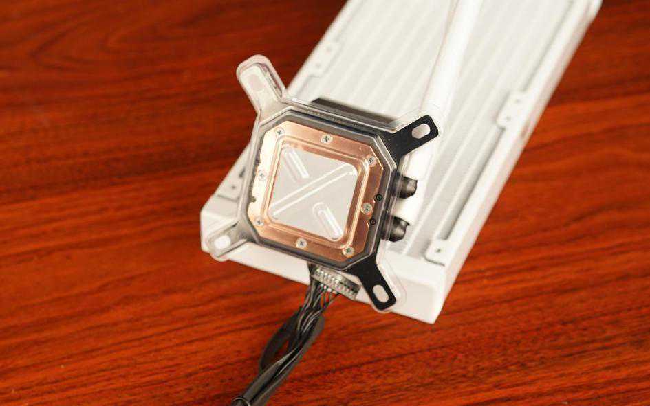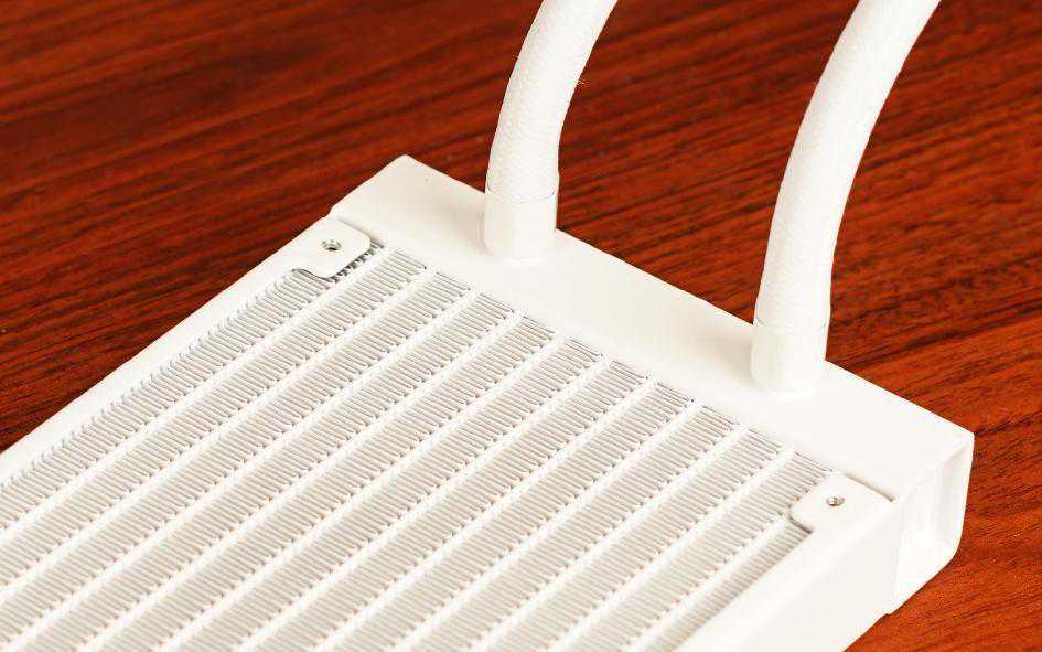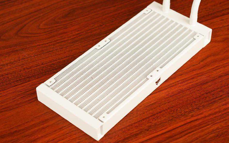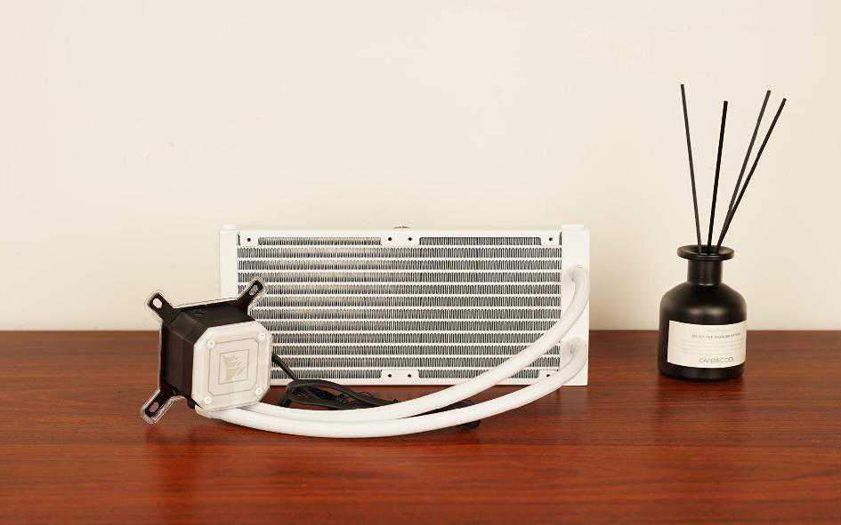 冷排部分,使用了铝合金冷排、白色色低渗透橡胶套水冷管。冷头内部使用分流式设计,噪音比小,让玩家在散热及静音之间能够达到平衡。