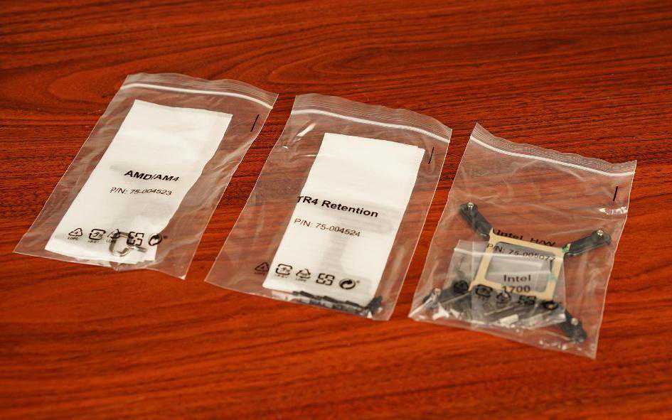包装内附赠有LGA1700、AMDAM4及TR4支座,能够对应Intel和AMD不同的平台。