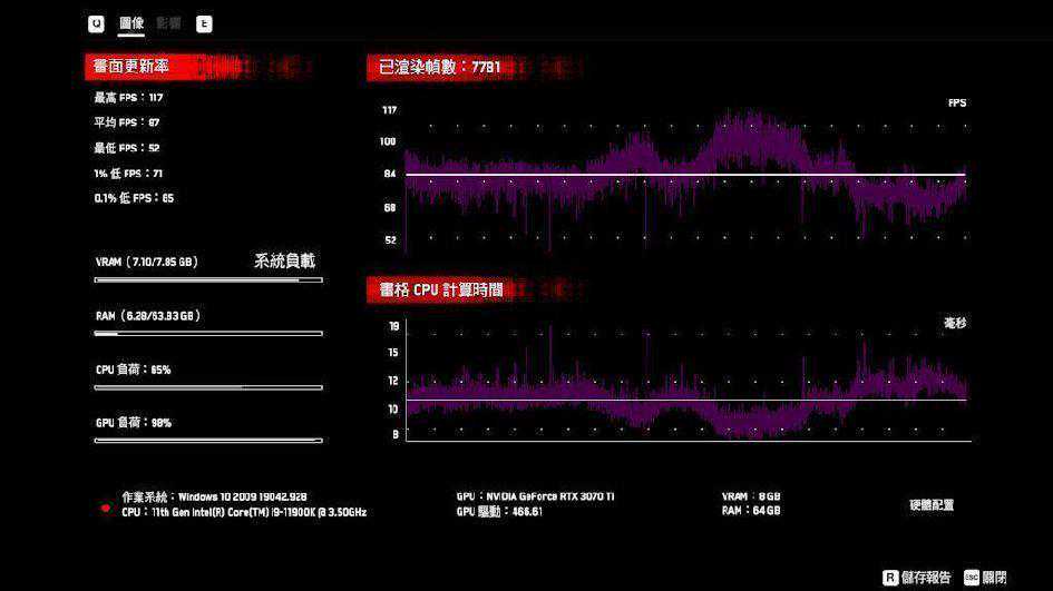 最高FPS:117,平均FPS:87