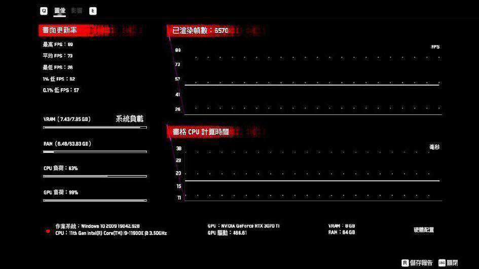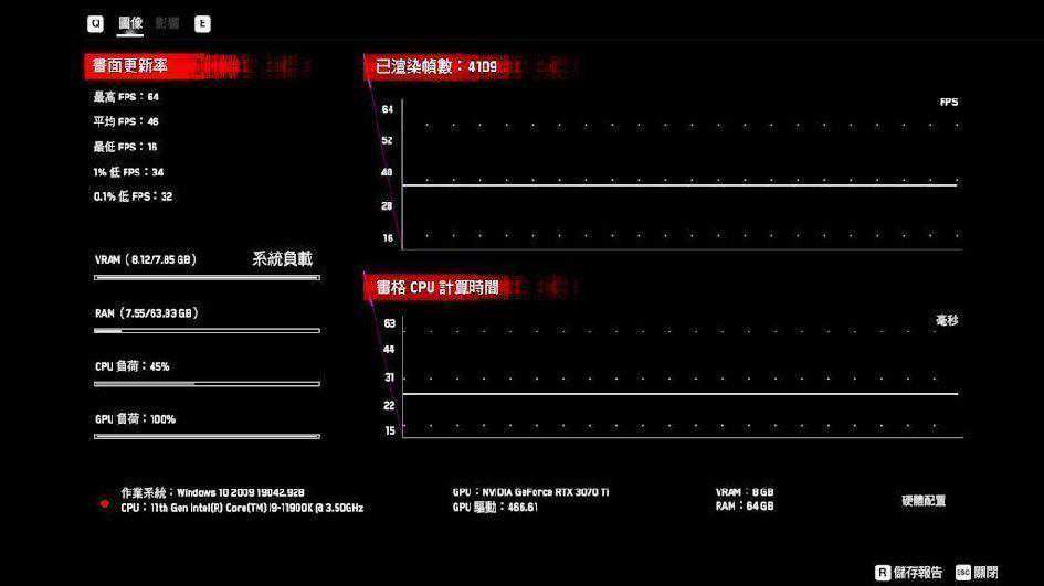最高FPS:64,平均FPS:46