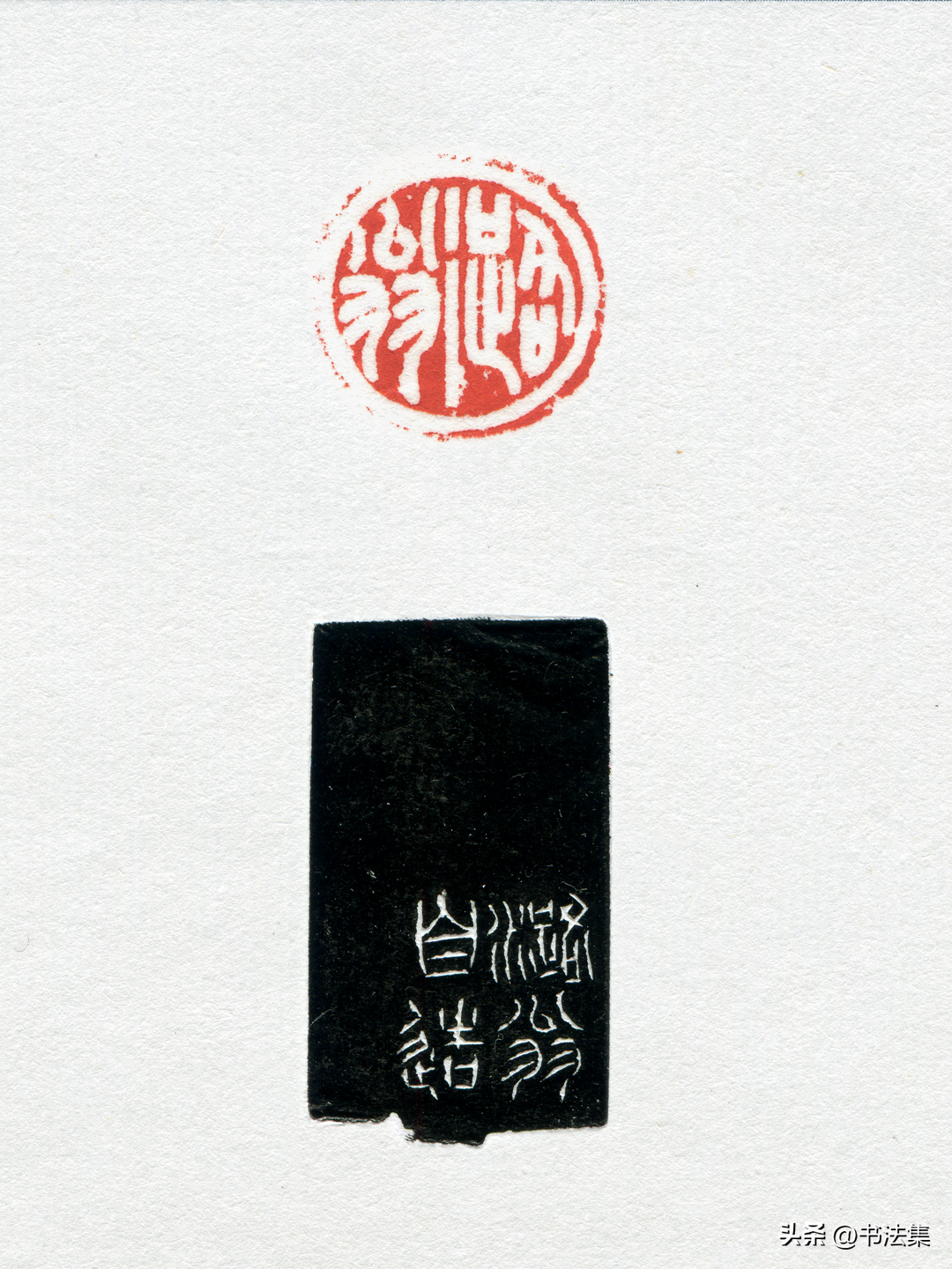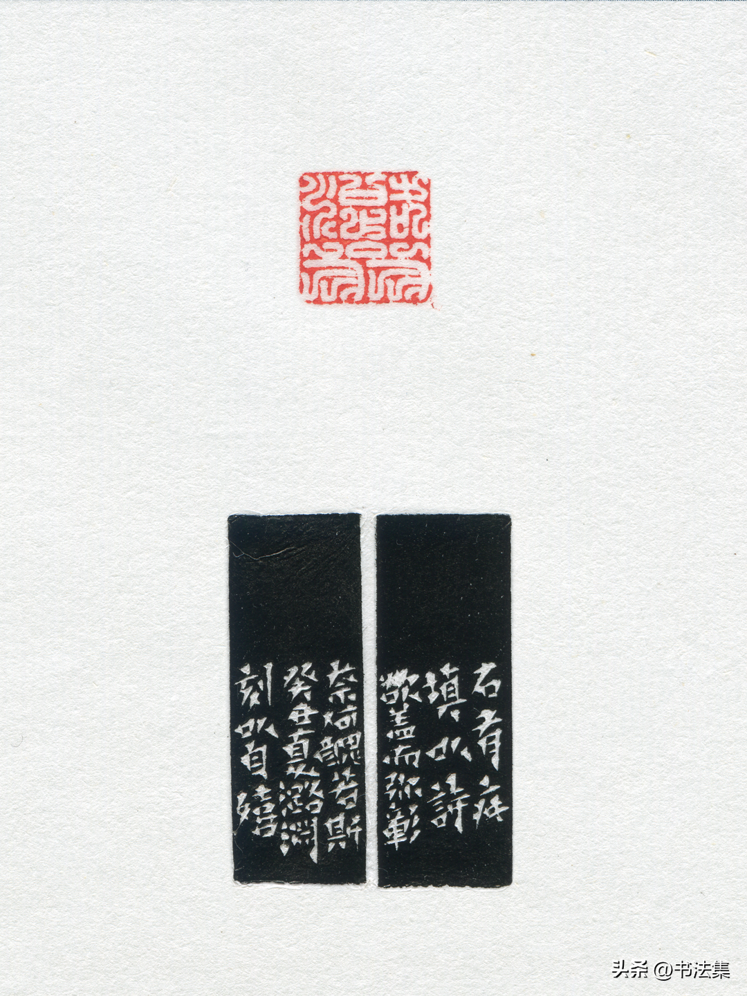 爲王蘧常刻八分對章,”王蘧常”朱白相式,款曰:”瑗仲先生名印,乙卯春月潞淵刻。”又古璽朱文印,款曰:”潞淵制於滬上静樂簃。”
