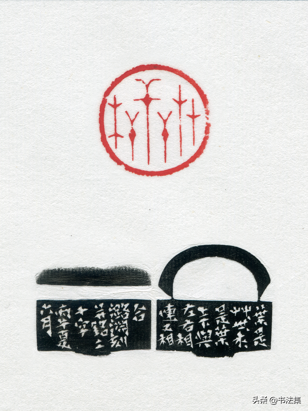 爲林散之刻朱文”林氏散之”,爲梅舒適刻金文印”梅氏鑒藏”。