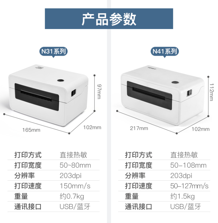 两款均是热敏打印机,免碳带、色带以及墨水,体积小,便于携带。同时打印速度较快,每小时能打三千单,乃高性价比之选。