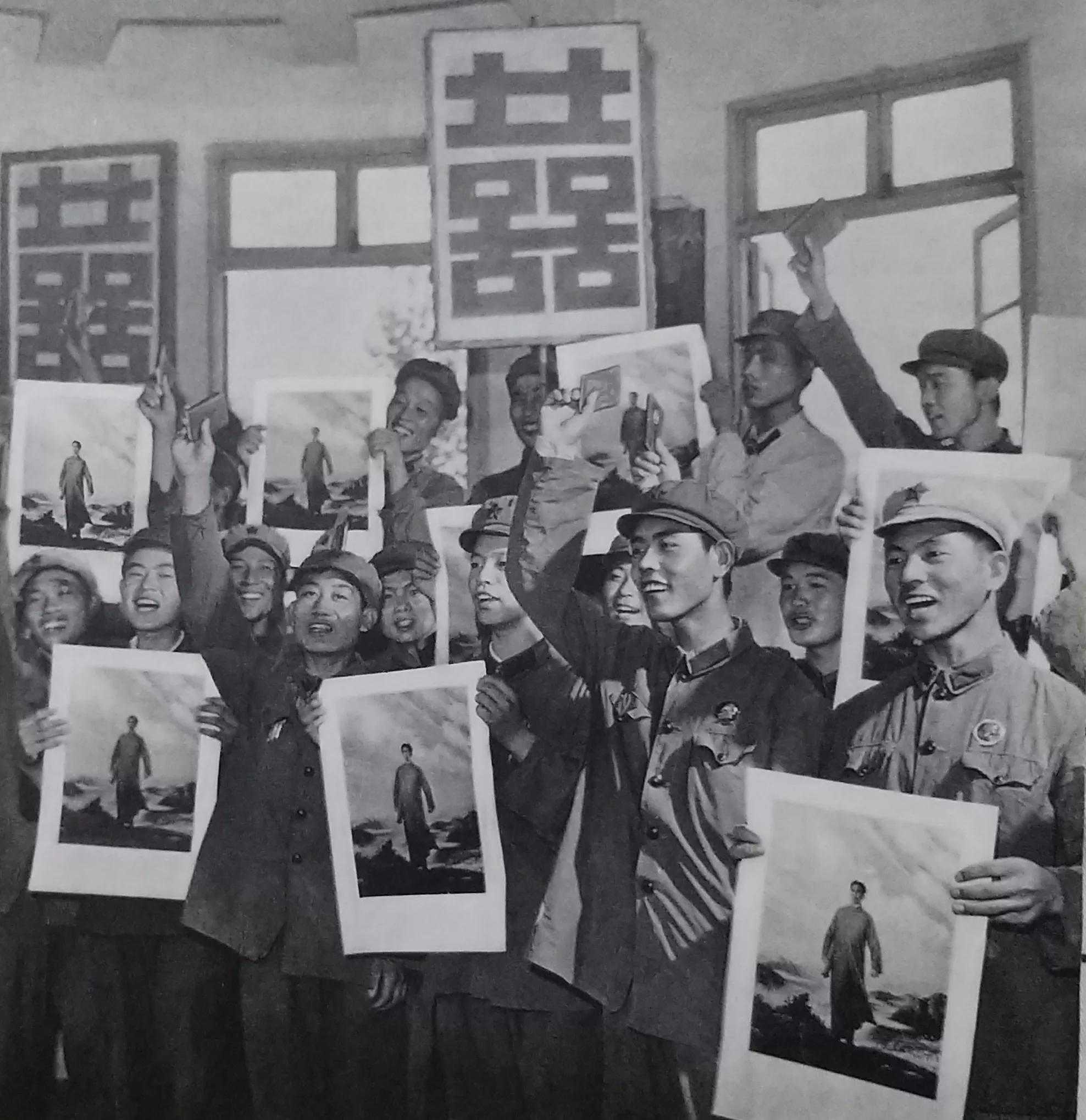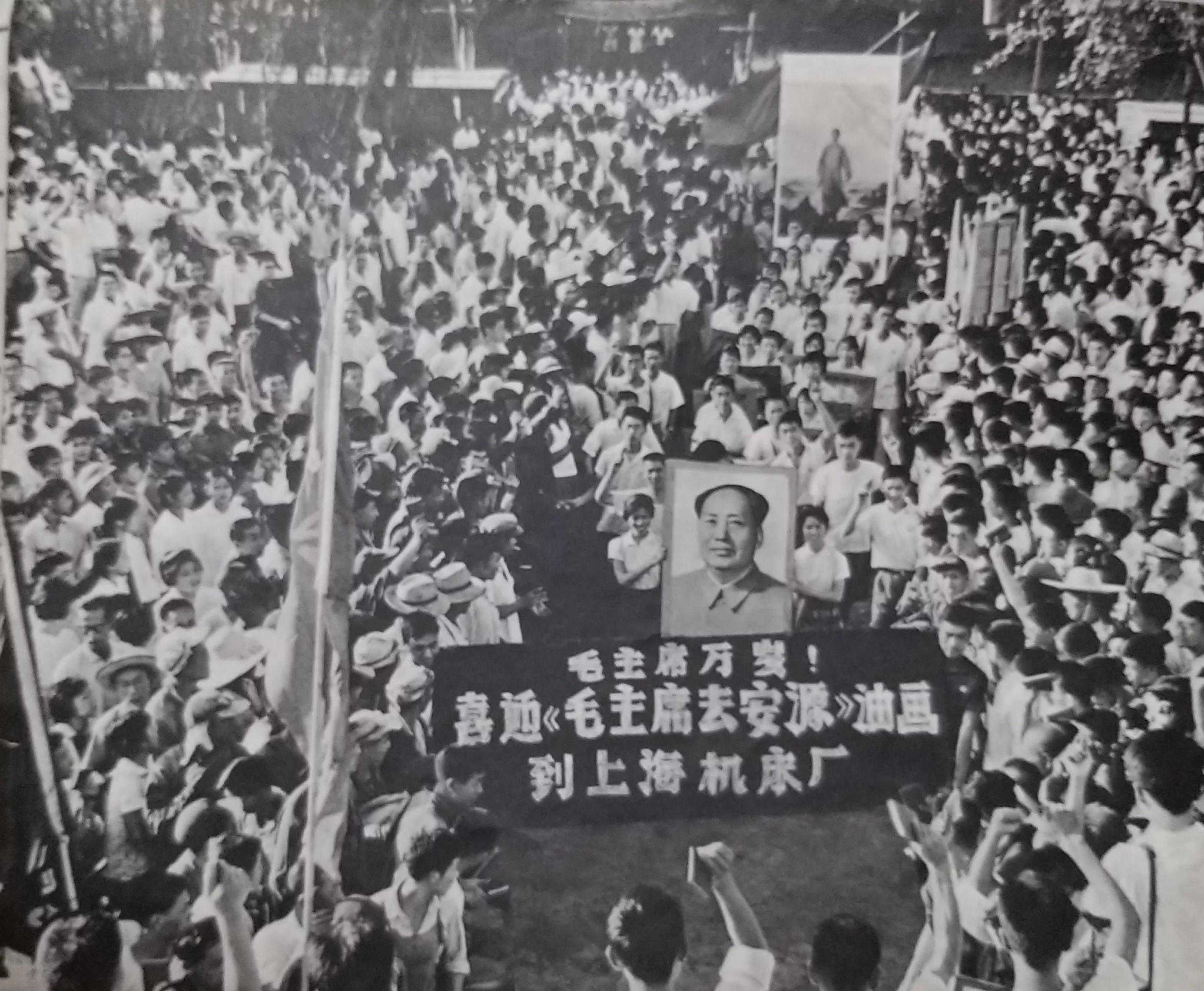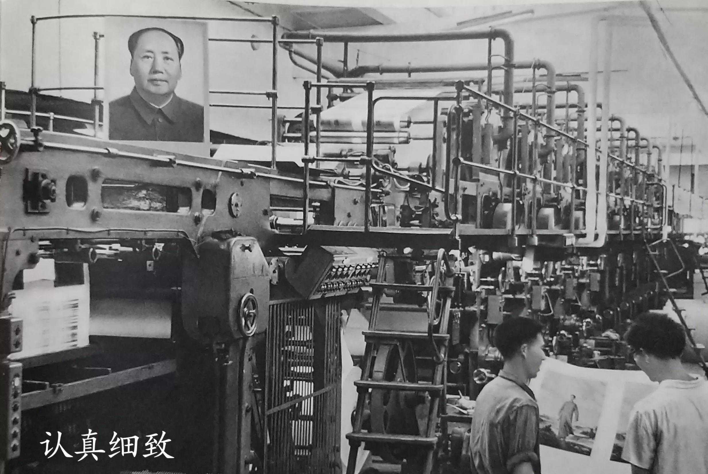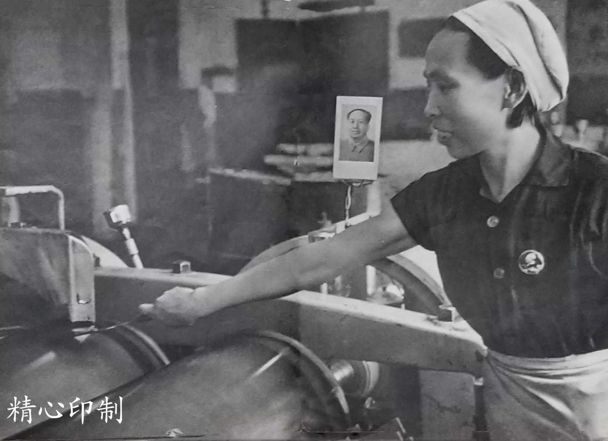 他们打破了旧框框,创造了多台机器“流水作业”的套色方法。凹印车间有两台快速轮转机,已经停用十年,这次经过快速维修,为印制油画《毛主席去安源》而转动起来了。三天战斗的结果,印制的这幅画像比一九六三年到一九六五年三年时间内所印的各种毛主席像还要多。工人们双手捧着亲自印制出来的《毛主席去安源》彩色画像,热血沸腾,激情满怀:“毛主席啊,毛主席!您亲自点燃的安源的革命烈火,永远鼓舞着我们前进!”