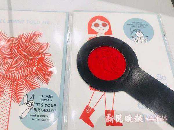 储思遥介绍了好几个不同贺卡中的“小心机”。“这款是能用‘放大镜’的贺卡,它采用凸版印刷,用手触摸贺卡表面,还有高低不平的触感。附赠的‘放大镜’其实是一个3D镜片,可以透过贺卡表面看见其隐藏的图案。例如这张可以看到孕妇肚子的小宝宝,另一张则是一整面的深情告白。”她告诉记者,这系列的贺卡全部出自一对美国老夫妻,出于对纸品的喜爱,他们在退休后购买了一台印刷机,将自己设计的图画打印成贺卡,由于需要纯手工操作,产量非常少。