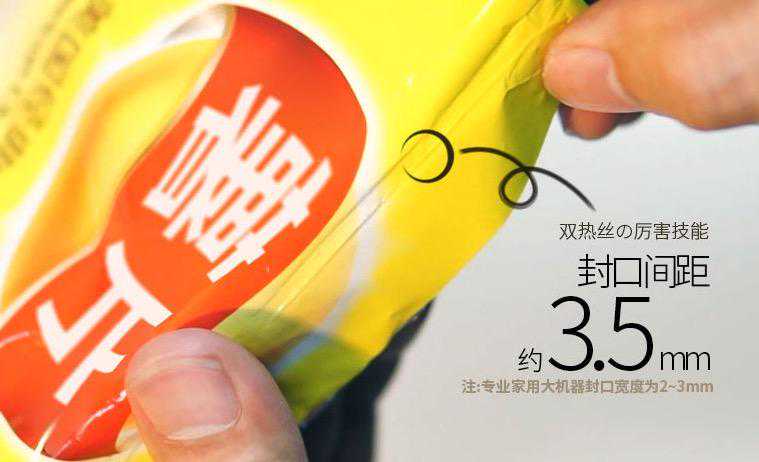 要知道,专业的家用封口机封条宽度在2~3mm,而飞比封口间距高达3.5mm。毕竟宽度越大的,密封效果更好。