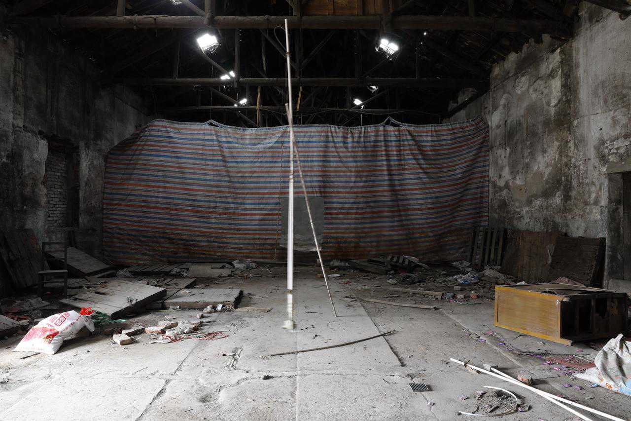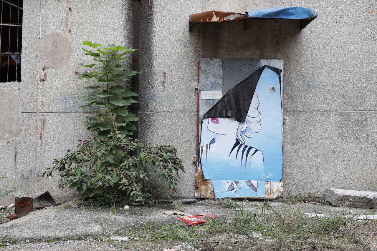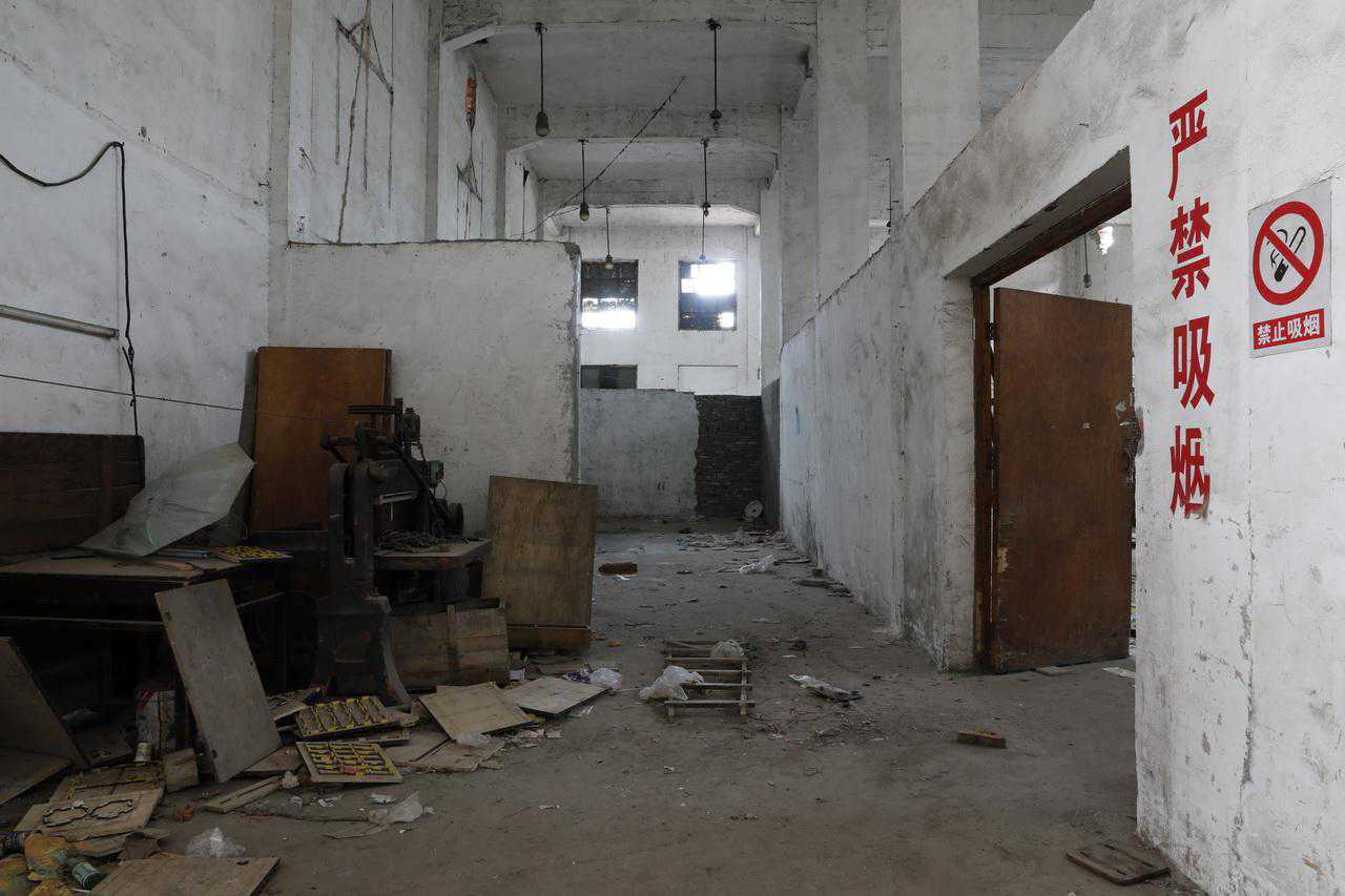 墙上的粘贴画是后来该厂出租给私营企业经营时留下的印记(周国献2017年10月拍摄)