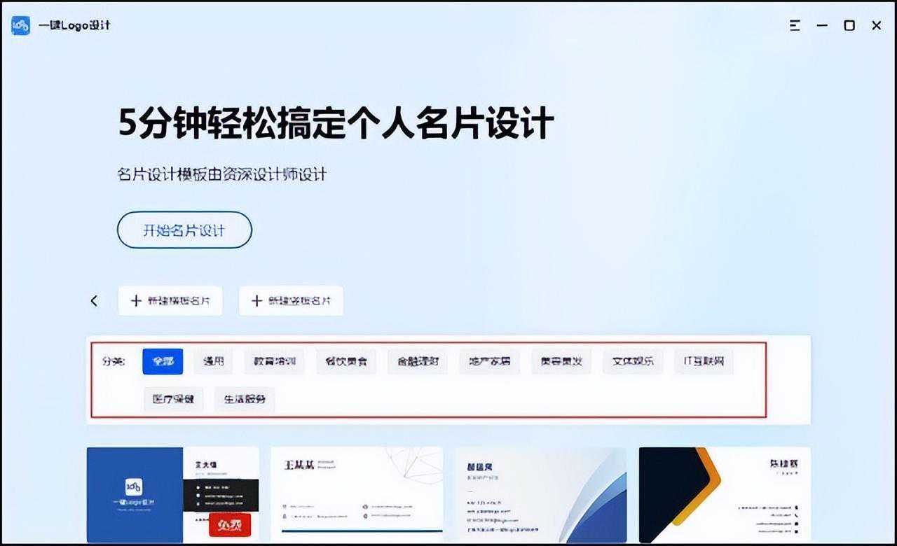 第二步:进入名片设计界面后,我们可以看到页面中有很多名片模板分类。我们可以根据自己的行业和专业属性来选择适合自己的模板。