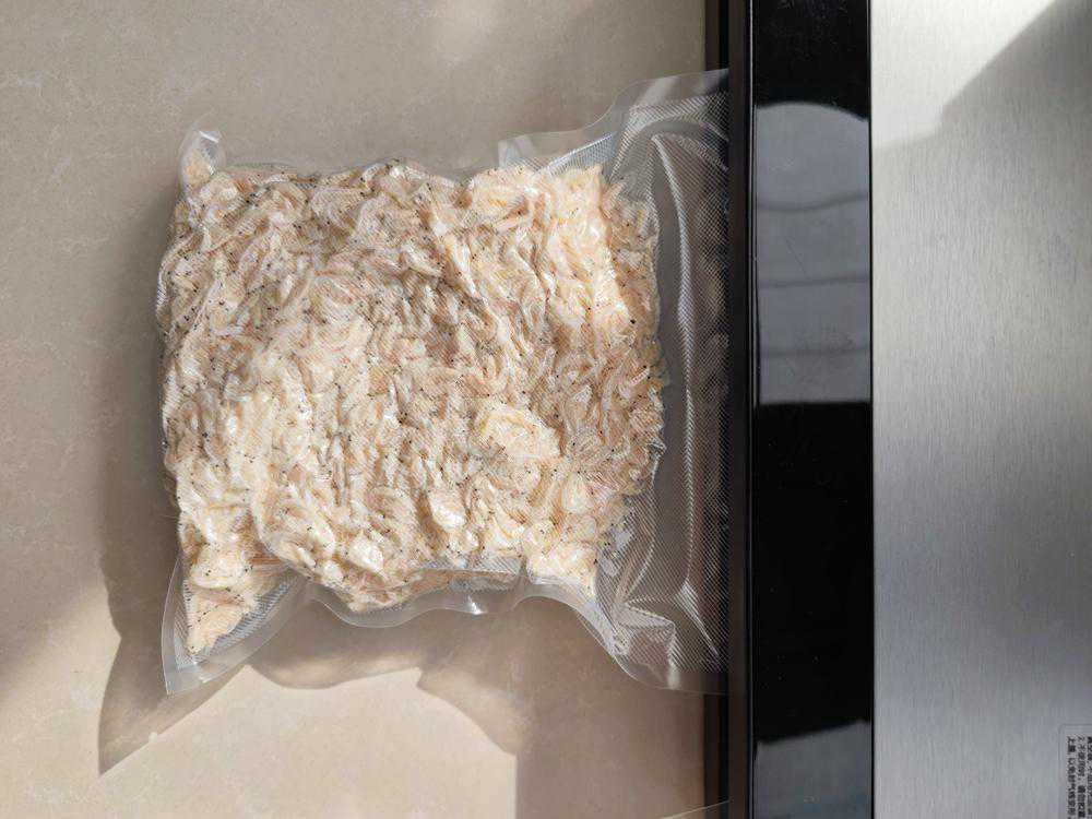 3、整只鸡在袋子里,极不规则,封装的关键是要袋口平整,为防止漏气可以再封一道口。