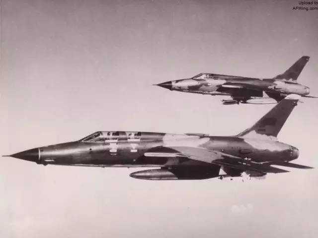 越战苦劳力,炸弹搬运工60年代,美军开始越战,在湿热的热带东南亚,F-105显然不用忙着投掷核弹,越战早期“雷公”几乎担负起美国空军所有轰炸支援任务,执行任务超过2万架次。1965年3月发动的滚雷行动,“雷”就是驻扎在泰国的F-105“雷公”,他们完成了该行动75%的轰炸任务。F-105一次可携带16枚340公斤炸弹,强大的破坏力给人留下深刻印象。F-105使用凝固汽油弹或70毫米火箭弹时,单机破坏力绝不逊于1个榴弹炮营的齐射。F-105战损率很高,美国国防部对这个战绩非常不满,1969年时多次使用1架原属伊拉克的米格-21与F-105展开模拟空战。