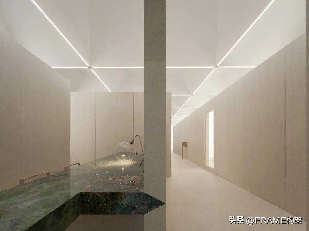 无间之间是一个岩板展厅,甲方唯一的要求是足够明亮。于是我把它想象成一个发光体的内部世界来设计。