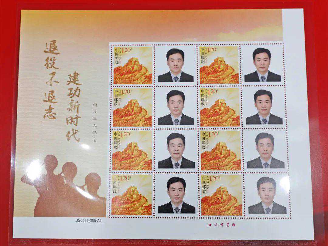 《退役不褪色建功新时代》退役军人个性化邮票,主图选用长城邮资图,附图为退役军人的个人肖像并缀以”军魂永驻”“退役不退志建功新时代”等主题文字,提升了退役军人的荣誉感、获得感。
