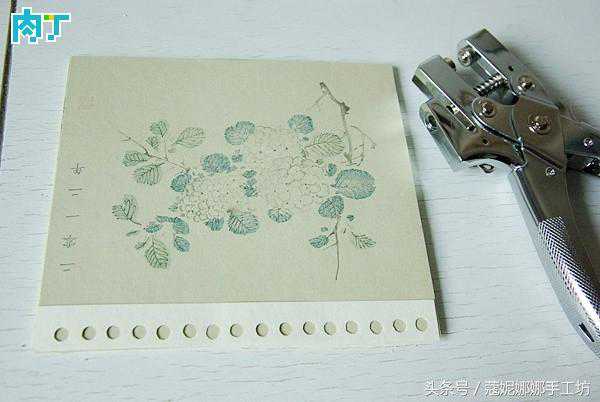 4裁一条(或者一张)卡片,长边跟台历纸相同,用铅笔在卡片上做一排等距的记号,然后用右边那种打孔器,依照记号位置,打出一排均匀的孔。