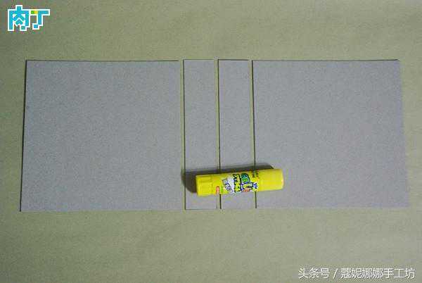 7剪一张较大的纸(我用的是宣纸),把四块灰纸板如图放置,用固体胶给这四块灰纸板粘上外包装。固体胶要涂抹均匀,全部地方都涂到。完成后就是台历的支架。